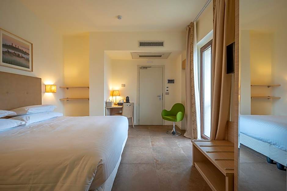 This triple room's special feature is the pool with a view. Offering free toiletries and bathrobes, this triple room includes a private bathroom with a bath, a shower and a bidet. The air-conditioned triple room offers a flat-screen TV with satellite channels, a mini-bar, a tea and coffee maker, a wardrobe as well as city views. The unit has 2 beds.